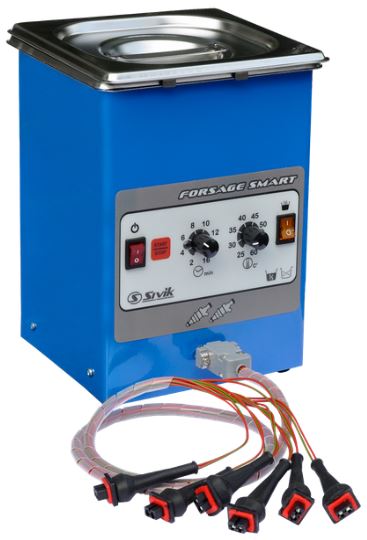 Ультразвуковая ванна (1,3 л) для очистки форсунок инжекторных бензиновых двигателей с таймером и подогревом. Количество одновременно промываемых форсунок - до 6 шт.