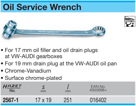 Ключ для обслуживания масленых систем 17х19 HAZET 2567-1 купить в Петрозаводске и других городах России