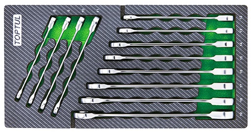 Набор комбинированных трещоточных ключей 8-19 мм, 12 предметов, в мягком ложементе (А) TOPTUL