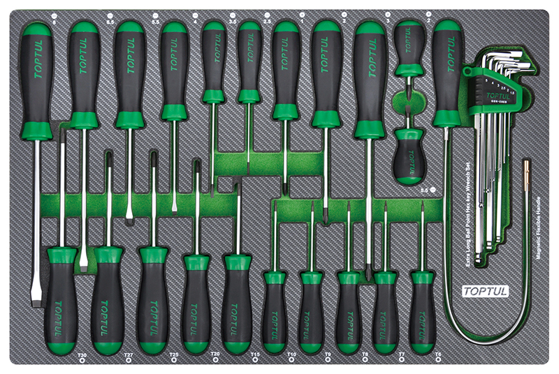Приобрести Набор отверток 31 пр. в мягком ложементе TOPTUL GED3102 от компании Toptul (Тайвань) из раздела Отвертки по цене 13 523 рублей.