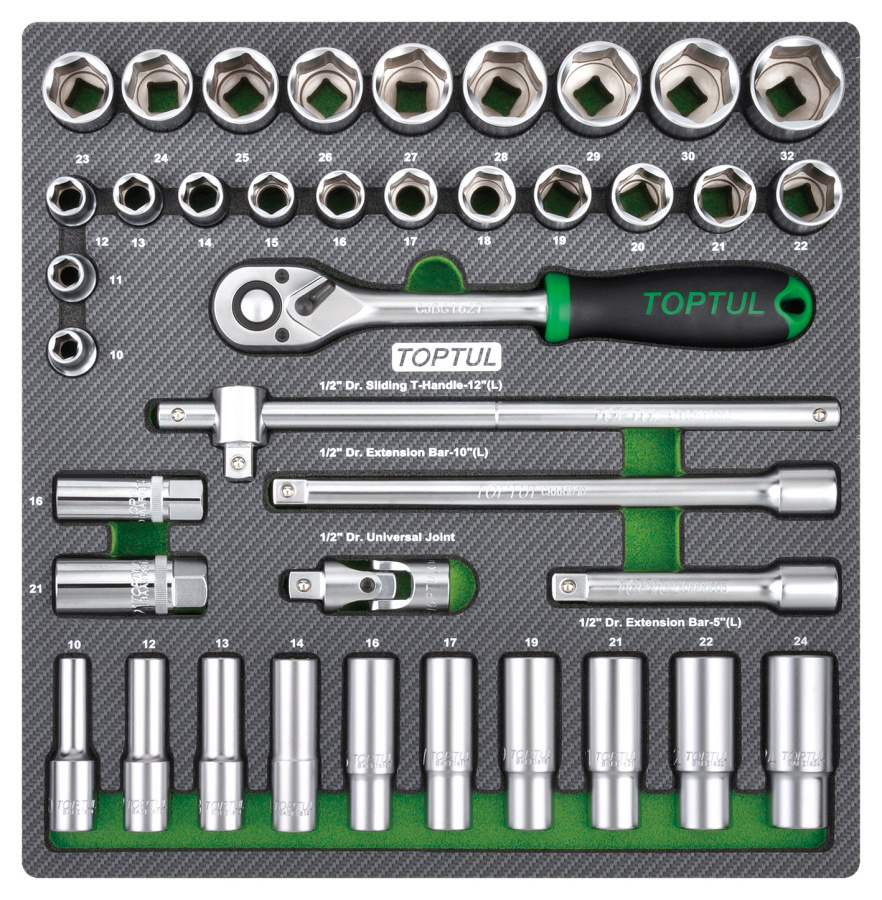 Набор головок и аксессуаров 1/2", 39пр. в мягком ложементе TOPTUL