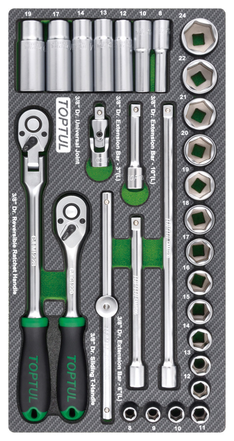 Набор головок и аксессуаров 3/8", 30 пр. в мягком ложементе TOPTUL GEA3005 купить в Петрозаводске и других городах России