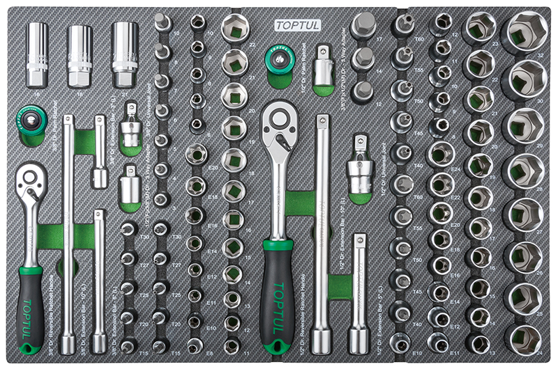 Набор головок и аксессуаров 3/8" и 1/2" 6-гр., 104 предмета в мягком ложементе (D) TOPTUL GEDA429 купить в Петрозаводске и других городах России
