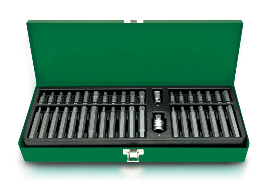 Набор бит с адаптерами 3/8" и 1/2", Torx, Spline, Hex, 40 предметов TOPTUL