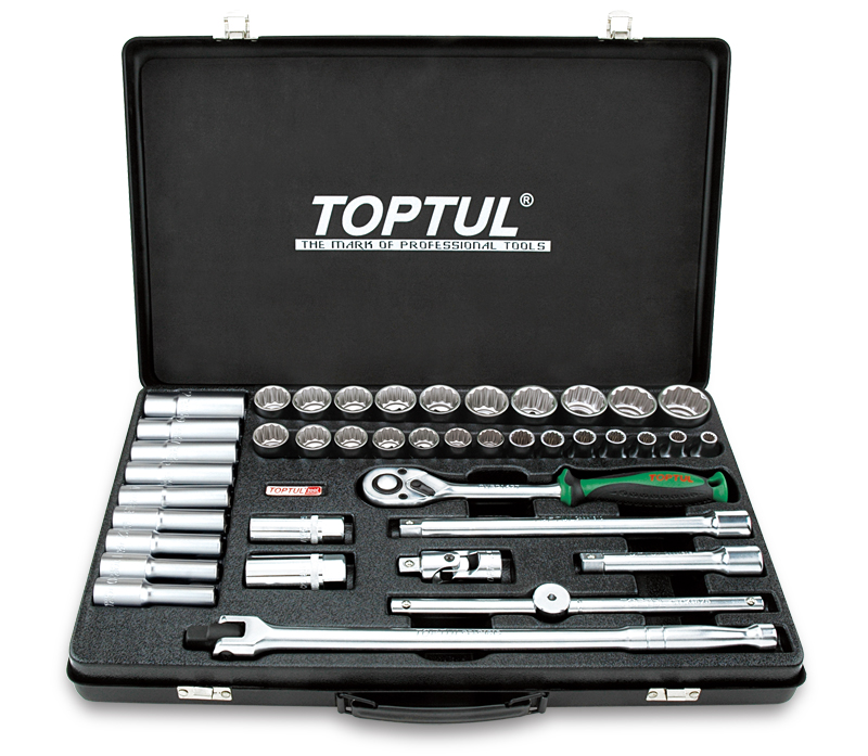 Набор головок и аксессуаров 1/2" 12-гранных 8-32 мм, 41 предмет в метал. кейсе TOPTUL GCAD4103 купить в Петрозаводске и других городах России