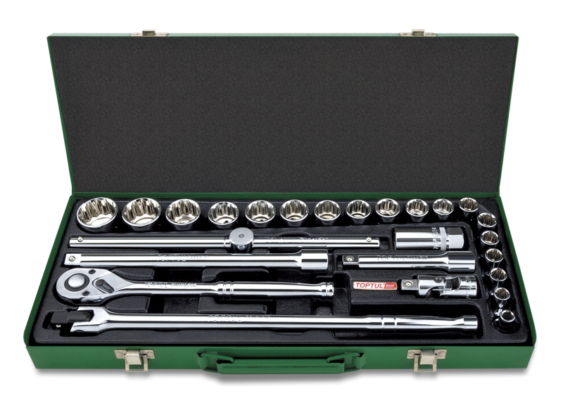 Набор головок и аксессуаров 1/2" 12-гранных дюймовых 5/16"-1-1/4", 25 предметов в метал.кейсе TOPTUL GCAD2514 купить в Петрозаводске и других городах России
