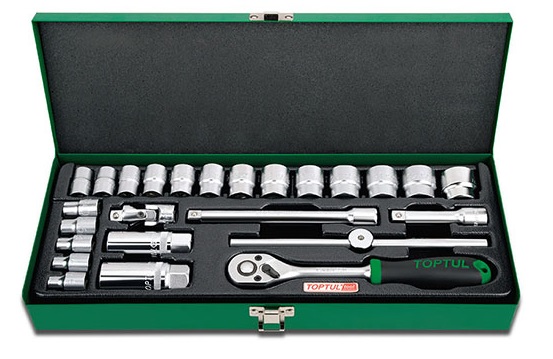 Набор головок и аксессуаров 3/8" 12-гранных 6-24 мм, 25 предметов в метал. кейсе TOPTUL GCAD2504 купить в Петрозаводске и других городах России