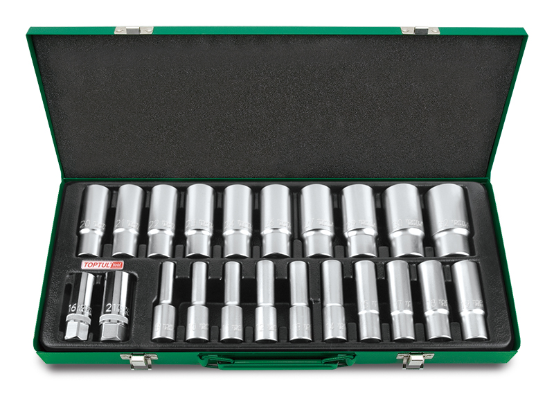 Набор головок удлиненных 1/2" 6-гранных 8-32 мм, 22 предмета в метал. ящике TOPTUL купить в Петрозаводске и других городах России